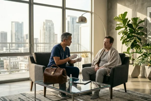 An on-demand house call brings a licensed housecall MD directly to your residence, providing professional medical care at home. This service eliminates the need for travel and long wait times, allowing for a thorough consultation in a familiar and stress-free environment.